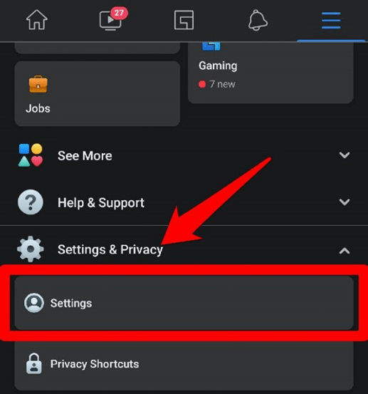 - بر روی تنظیمات و حریم خصوصی کلیک کنید و “تنظیمات” را از لیست انتخاب کنید.